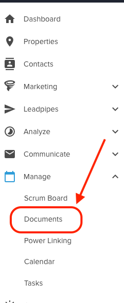 Within LeadFlow you can upload documents in specific contact and property files as well as a general documents section.
