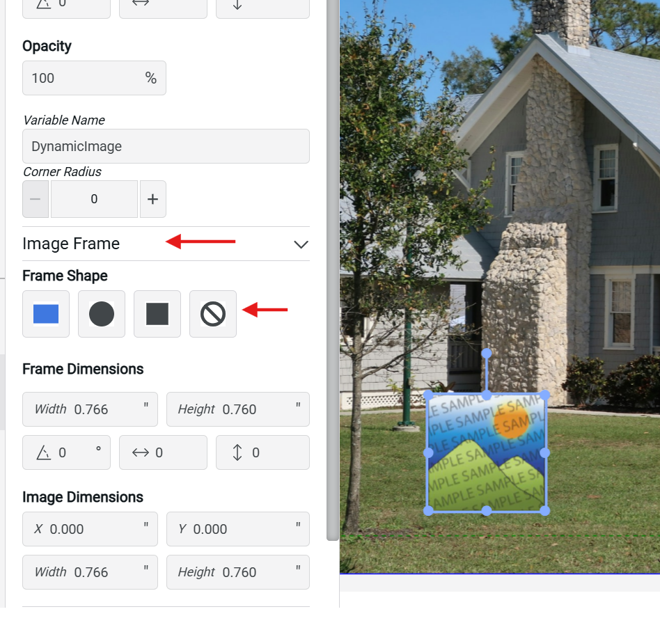 - Increase the image width (try setting it to 2.0 or larger) to ensure the image will look good when the frame is reapplied