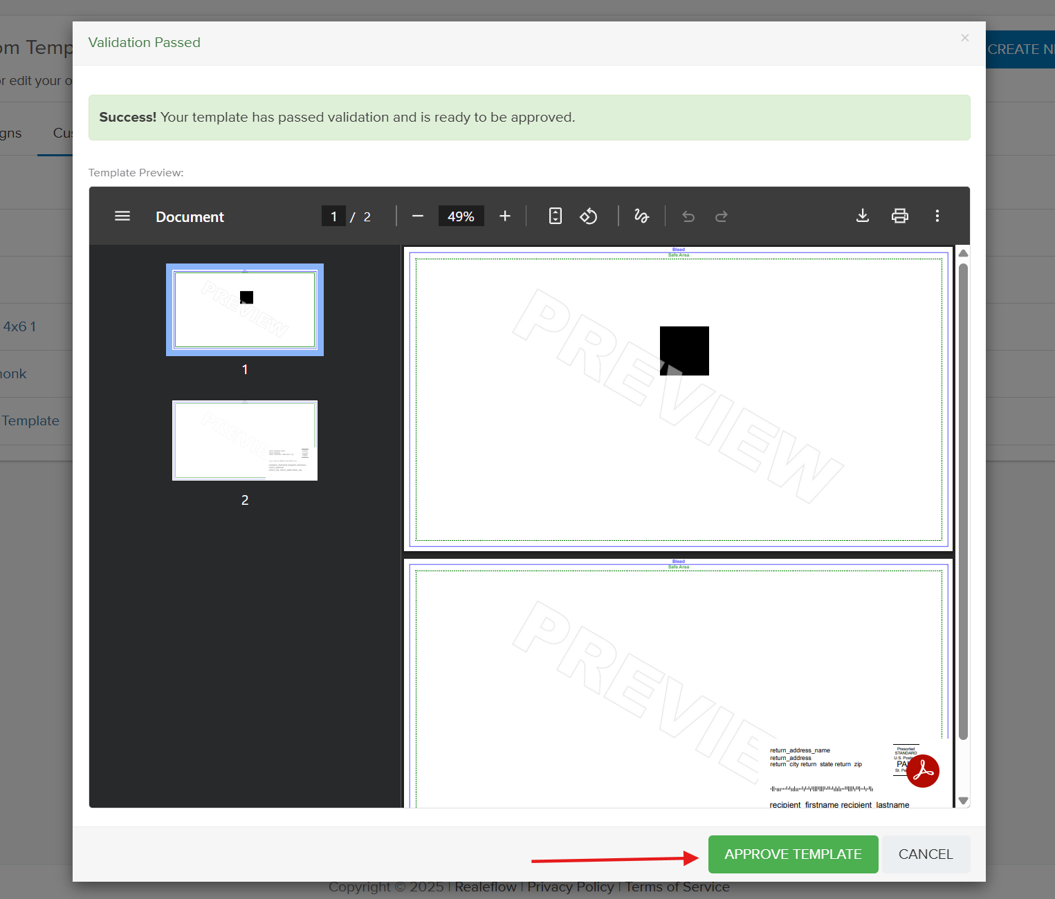 2. Click the Orange checkmark, which indicates that it requires validation, and a preview of your design will populate.