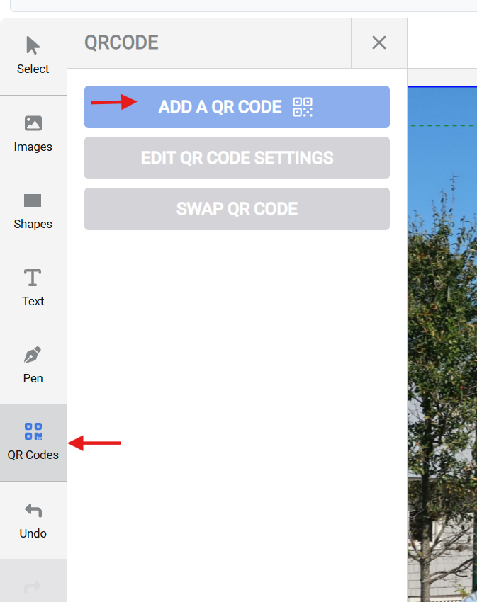 1. Click the QR Codes selection on the left menu and click Add A QR Code