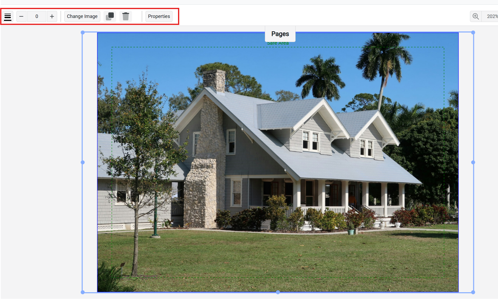 a. When clicking in the image container, you will have a full menu of options to Change image, duplicate, delete, or adjust advanced properties at the top left